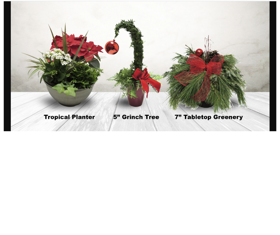 Our tabletop Greenery, Grinch Tree, and Tropical planters are a favourite: